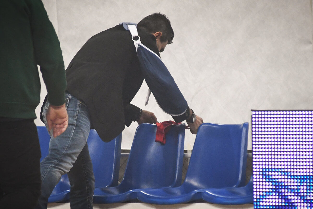 Εκεί ο ισχυρός άνδρας της πράσινης ΚΑΕ, έβγαλε ένα κόκκινο γυναικείο εσώρουχο και το άφησε στα καθίσματα, θέλοντας να «πικάρει» έτσι τους Πειραιώτες για την απόφασή τους αυτή.