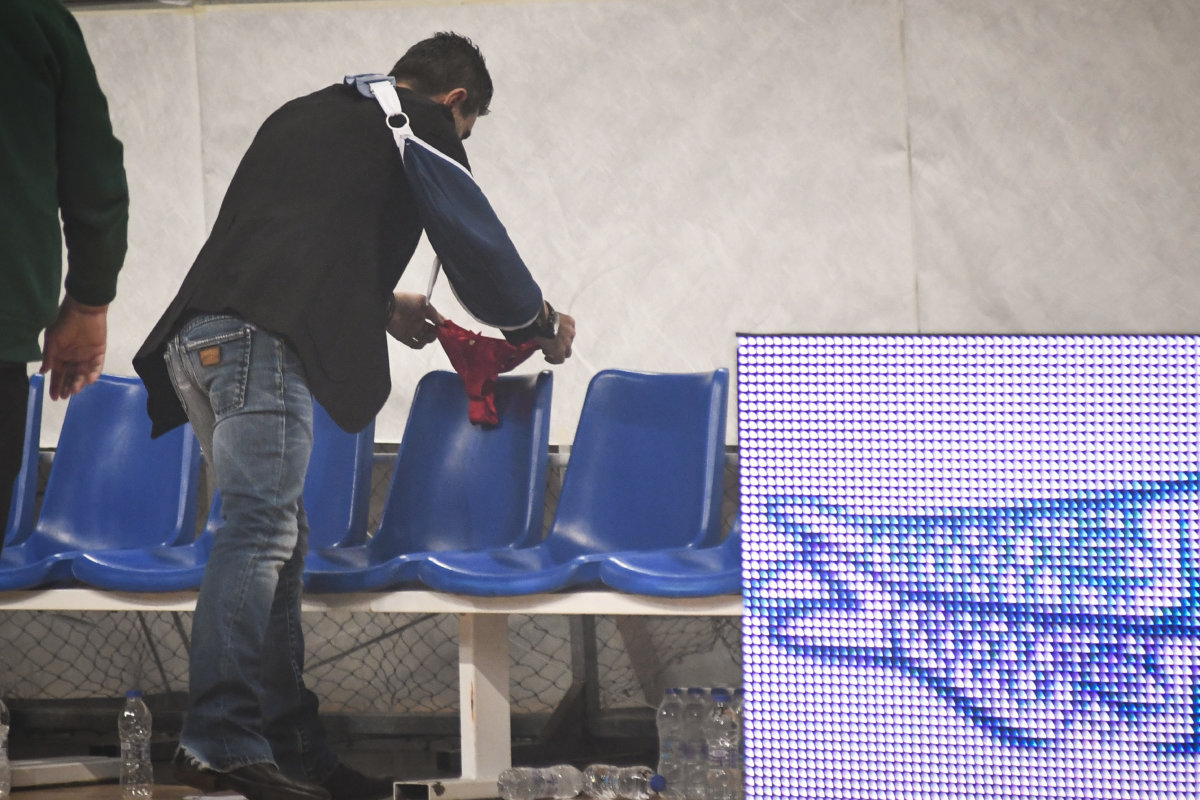 Μετά την απόφαση του Ολυμπιακού να μην κατέβει στο δεύτερο ημίχρονο του αγώνα κυπέλλου μπάσκετ στο ΟΑΚΑ με τον Παναθηναϊκό, ο Δημήτρης Γιαννακόπουλος κινήθηκε προς τον πάγκο που κάθονταν οι «ερυθρόλευκοι».