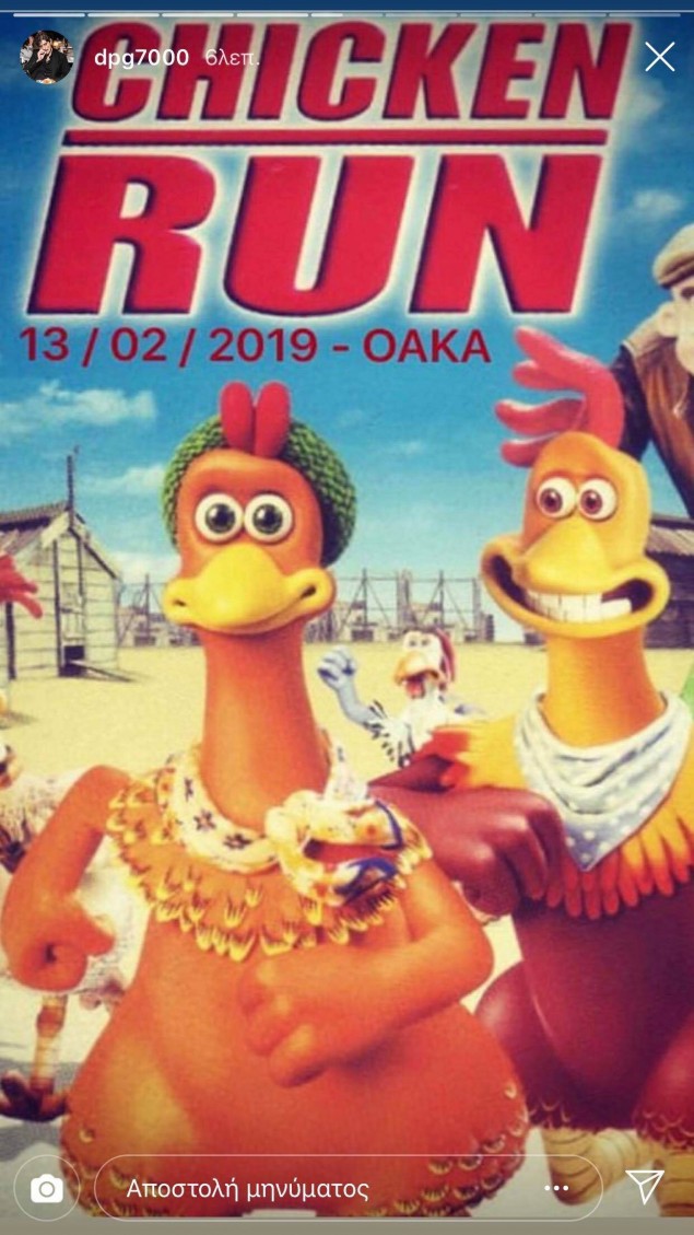 Χρησιμοποίησε στο instagram την αφίσα από την ταινία «Οι κότες το ΄σκασαν», σημπληρώνοντας τη χθεσινή ημερομηνία του ντέρμπι και την τοποθεσία του ΟΑΚΑ.