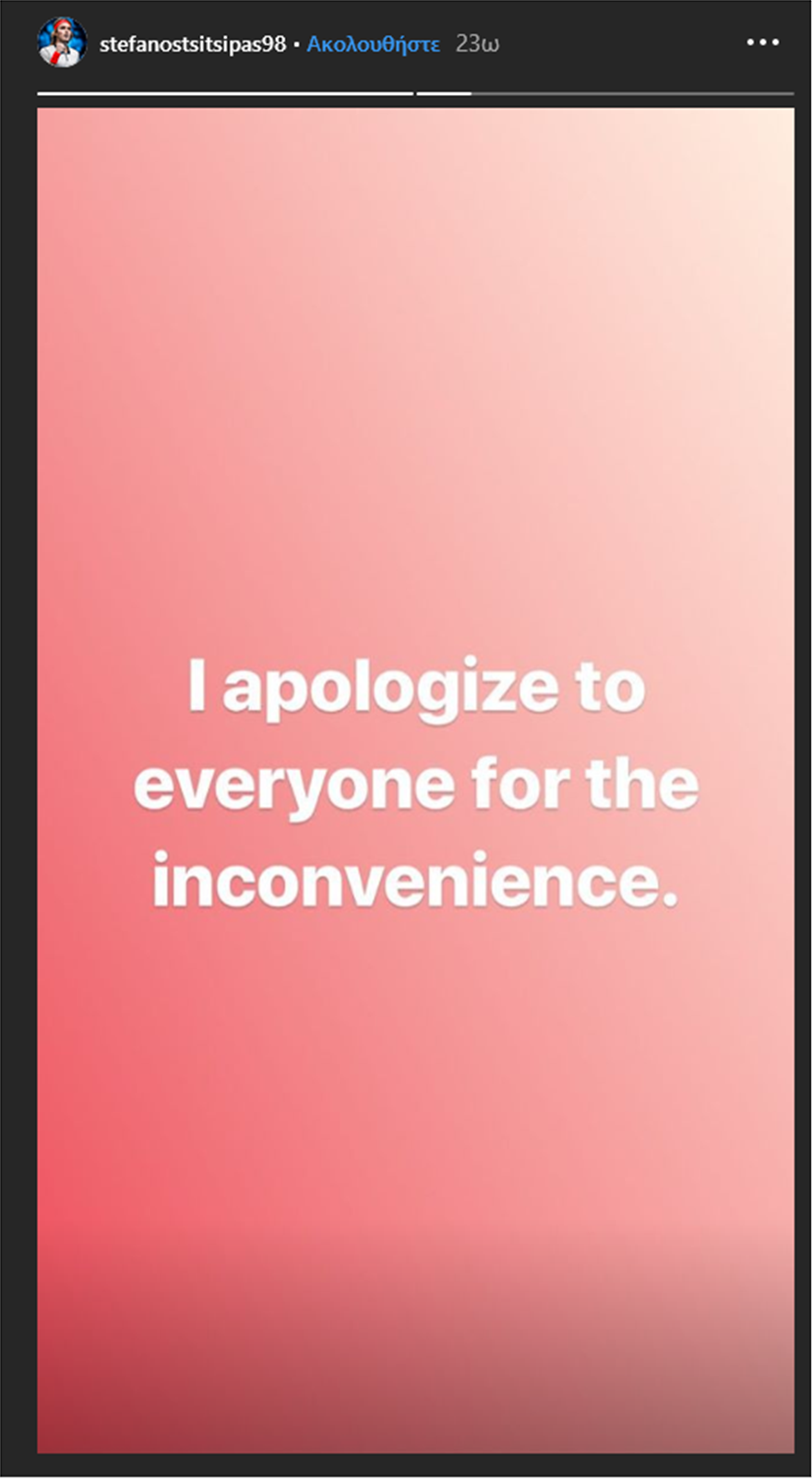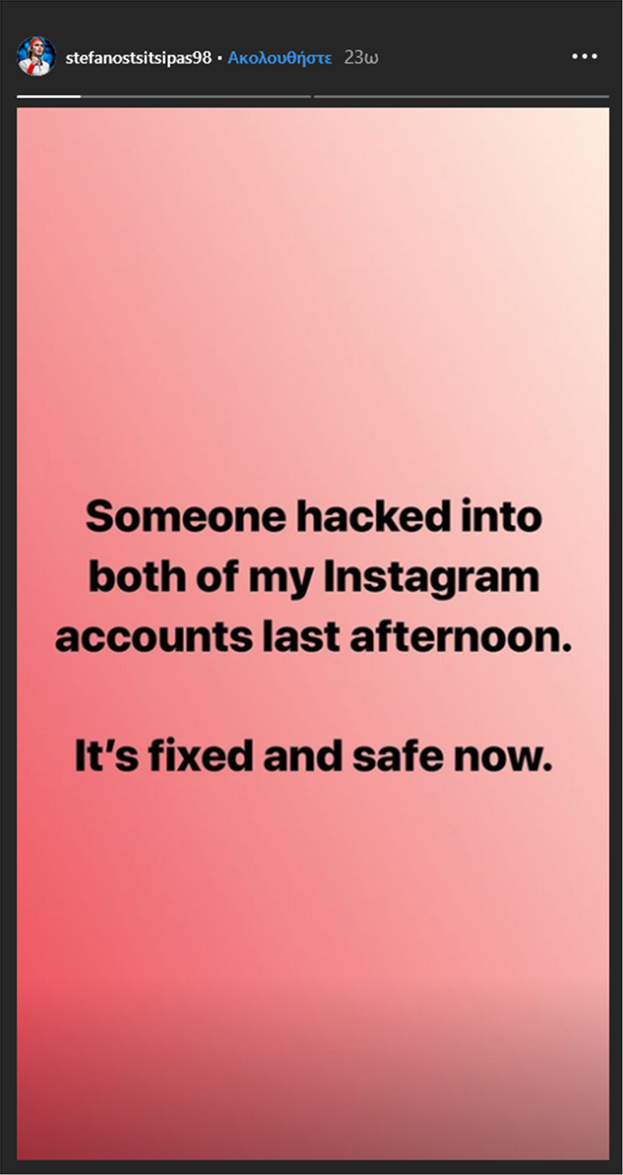 Θύμα χάκερς έπεσε ο λογαριασμός Instagram του Στέφανου Τσιτσιπά. Το γεγονός αποκάλυψε ο ίδιος μέσα από τα Ιnsta Stories.