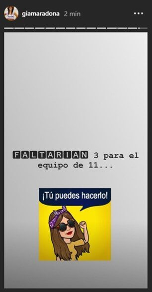 Ο Αργεντινός θρύλος έχει συνολικά οκτώ παιδιά, με την κόρη του, Τζιανίνα Μαραντόνα, να τον… τρολάρει, δημοσιεύοντας ένα στόρι στο προσωπικό της προφίλ στο instagram που αναφέρει: «Λείπουν τρία για να κάνεις ομάδα των 11…. Μπορείς να το κάνεις!».