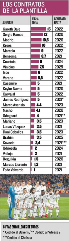 Πρώτος και καλύτερος ο Γκάρεθ Μπέιλ που μετά την αποχώρηση του Ρονάλντο, είναι ο πιο ακριβοπληρωμένος της Ρεάλ με 15 εκατ. ευρώ ετήσιες απολαβές και συμβόλαιο ως το 2022.