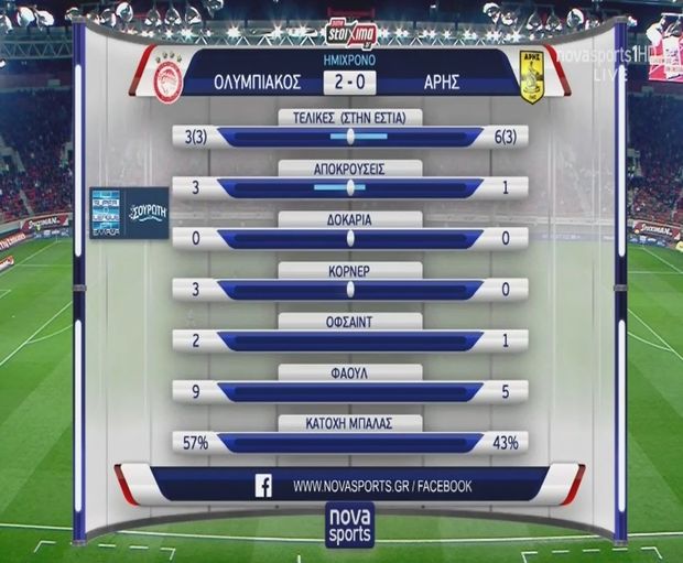 Η στατιστική απεικόνιση του πρώτου ημιχρόνου