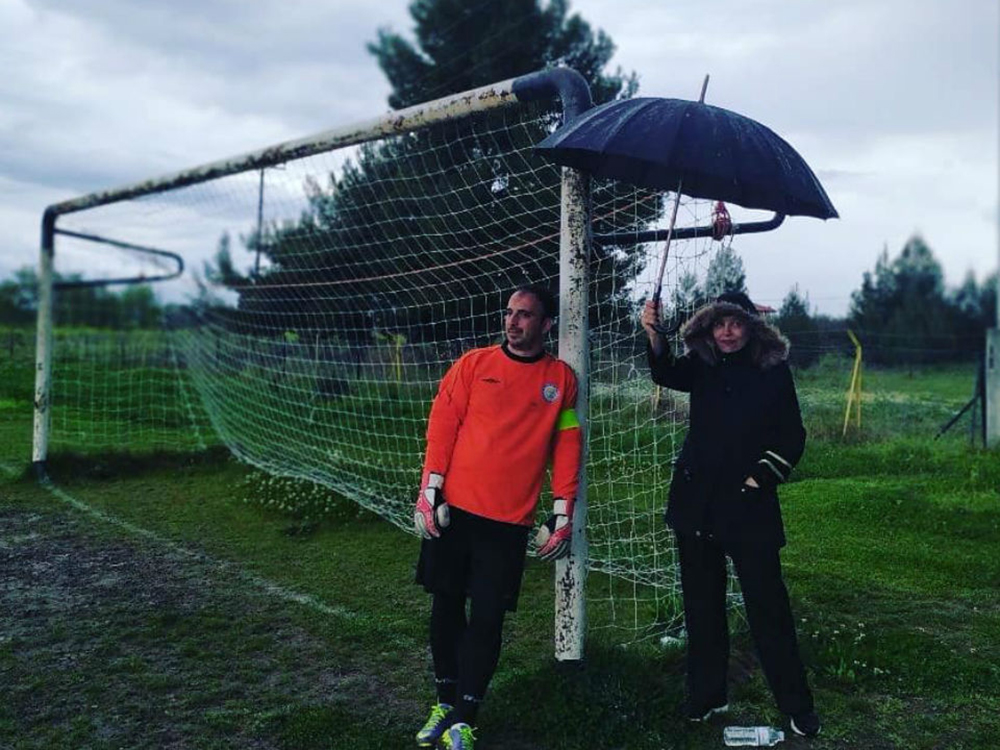 Η Ελληνίδα μάνα είναι μια κατηγορία μόνη της – Κρατάει ομπρέλα στον τερματοφύλακα γιος της για να μην βραχεί (φωτό)