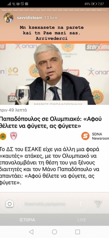 Επ’ αυτού τοποθετήθηκε ο Γιώργος Σαββίδης που έστειλε μήνυμα στην «ερυθρόλευκη» διοίκηση: «Μην ξεχάσετε να πάρετε και την ΠΑΕ μαζί σας. Arrivederci».