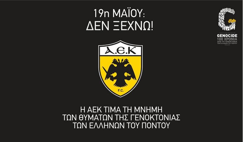 Η ΠΑΕ ΑΕΚ δεν ξεχνά τα θύματα της Γενοκτονίας των Ελλήνων του Πόντου και ως αθλητικό σωματείο με προσφυγικές ρίζες στέλνει το δικό της μήνυμα για την 19 Μαΐου και τα 100 χρόνια από τη Γενοκτονία των Ποντίων.