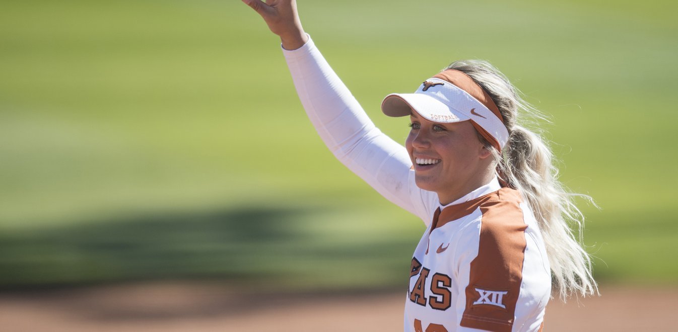 Η πανέμορφη πίτσερ του Τέξας Μιράντα Έισιξ που είναι και το μεγάλο αστέρι της ομάδας έριξε τη μπάλα στην Ελίσα Μπράουν στην κορυφή του inning.