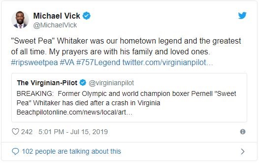 Σε τροχαίο δυστύχημα σκοτώθηκε ο θρυλικός μποξέρ Περνέλ Γουίτακερ σε ηλικία 55 ετών σκορπίζοντας θλίψη στον χώρο του αθλητισμού. Ο Γουίτακε παρασύρθηκε θανάσιμα από αυτοκίνητο σε διασταύρωση στην πατρίδα του στη Βιρτζίνια Μπιτς.