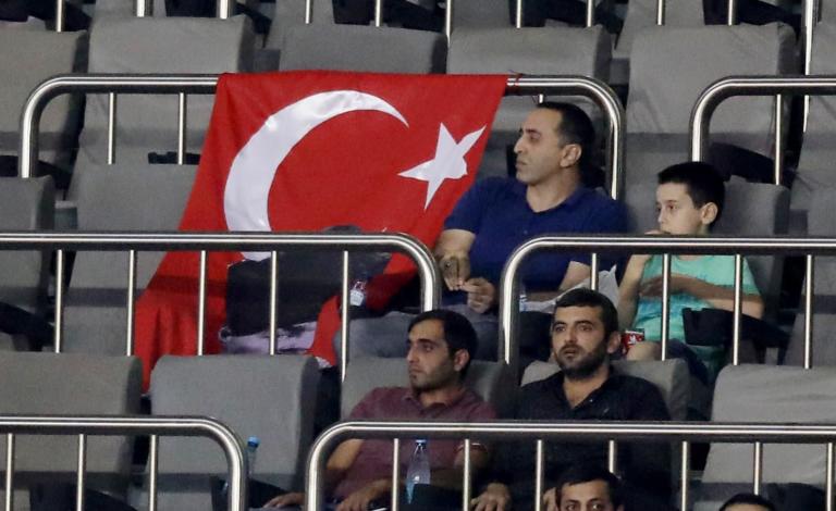 Πιο συγκεκριμένα, σε διάφορα σημεία του γηπέδου οι Αζέροι έχουν αναρτήσει σημαίες της Τουρκίας και του Ψευδοκράτους θέλοντας να προκαλέσουν τον κυπριακό σύλλογο και τους οπαδούς τους.