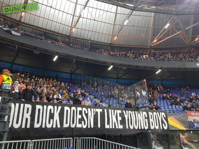 Φέγενορντ και Γιουνγκ Μπόις αναμετρήθηκαν για την 4η αγωνιστική των ομίλων του Europa League και ήρθαν ισόπαλες 1-1 στο ευρωπαϊκό ντεμπούτο του Ντικ Άντβοκαατ στον πάγκο της ολλανδικής ομάδας, μετά την απομάκρυνση του Γιάπ Σταμ. Την παράσταση όμως έκλεψε ένα πανό των Ολλανδών οπαδών που χρησιμοποίησαν το όνομα του τεχνικού της ομάδας τους μαζί με αυτό της αντιπάλου ομάδας για να κάνουν ένα… πικάντικο λογοπαίγνιο.