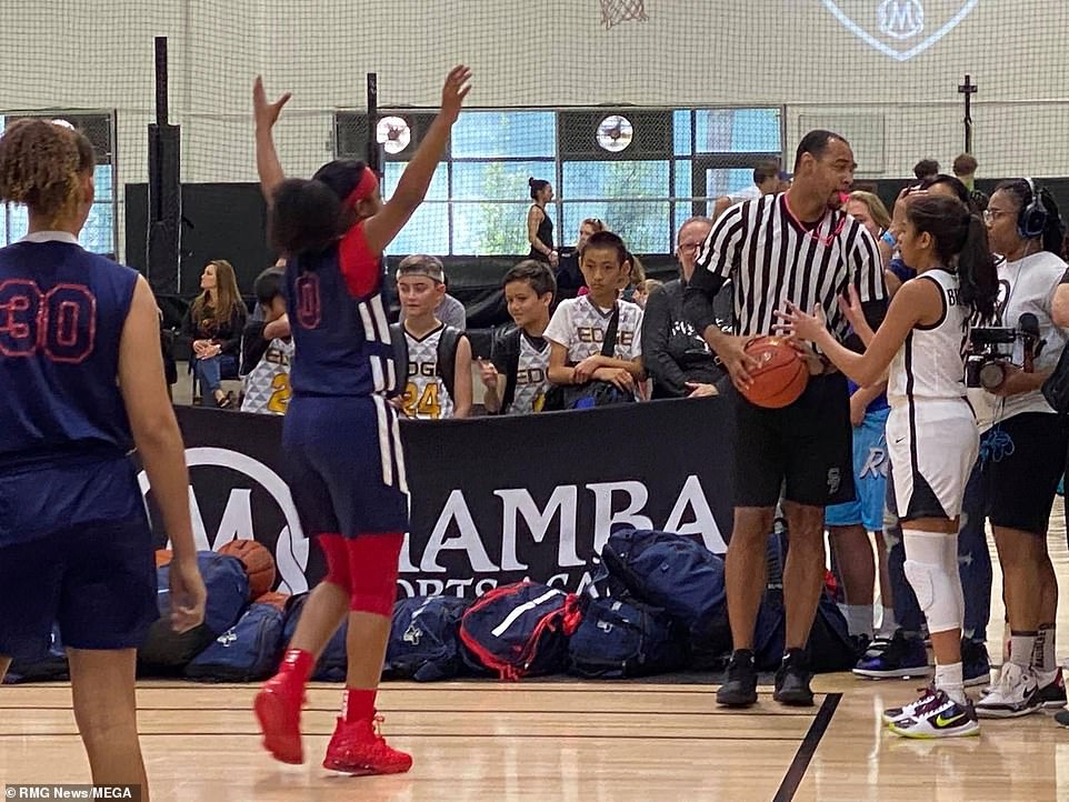 Όπως μπορείτε να δείτε στις φωτογραφίες (που δημοσίευσε το tmz.com) ο Κόμπι δεν ήταν απλός θεατής, αλλά όταν είχε την ευκαιρία έδινε κάποιες συμβουλές στην Τζίτζι, χωρίς να είναι ξεκάθαρο αν είχε το ρόλο του προπονητή (που είχε επισήμως σε κάποιες άλλες ομάδες της ακαδημίας του).