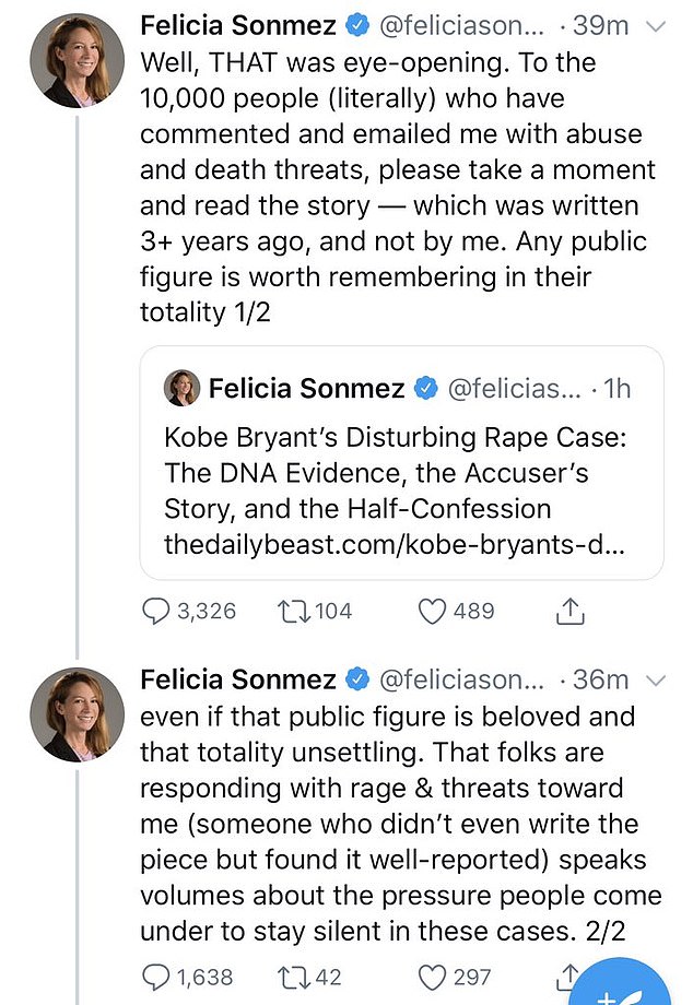 Η δημοσιογράφος της Washington Post, Felicia Sonmez, προκάλεσε σάλο στα social media με ανάρτησή της στο twitter για τον Κόμπι Μπράιαντ, λεπτά μετά την είδηση για το δυστύχημα του αδικοχαμένου σταρ του NBA.