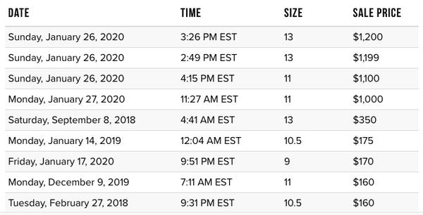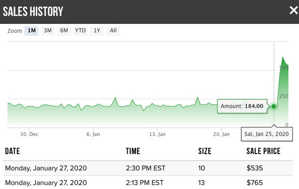 Ενδεικτικά, κάποια ζευγάρια στο StockX που προηγουμένως πωλούνταν για λιγότερα από 200 δολάρια, από την Κυριακή και μετά πωλούνται πάνω από 1000 δολάρια!
