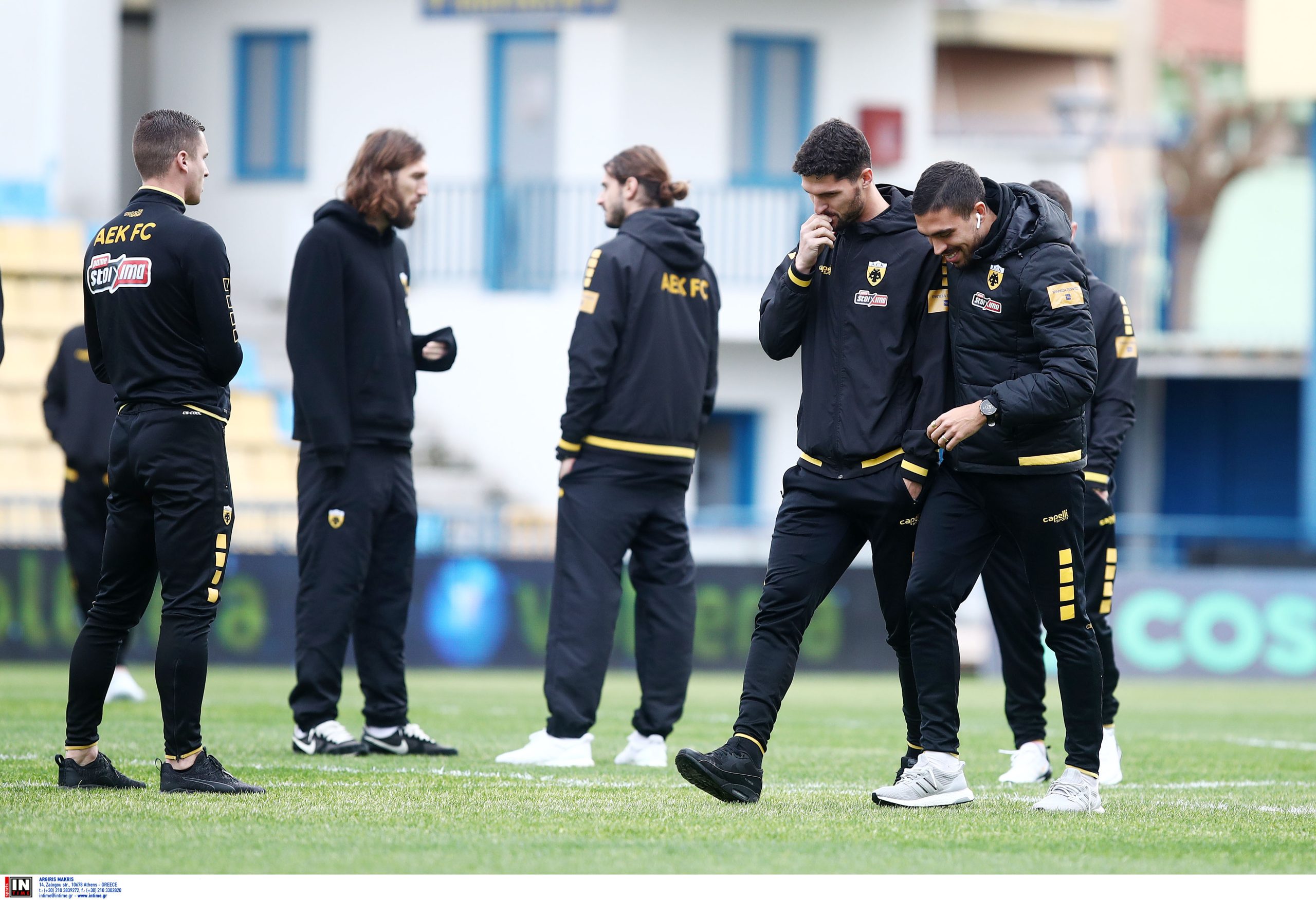 Στον πάγκο για την ΑΕΚ βρίσκονται οι: Αθανασιάδης, Μπακάκης, Οικονόμου, Σιμάνσκι, Σαρδέλης, Αραούχο και Χριστόπουλος.