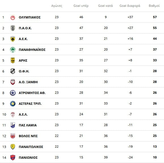 Ο «Δικέφαλος του Βορρά» συνεχίζει όμως να βρίσκεται σε απόσταση «αναπνοής» και μετά την 23η αγωνιστική του πρωταθλήματος, αφού λίγο αργότερα «διέλυσε» με 4-0 τον ΟΦΗ στην Τούμπα και περιμένει στην έδρα του και τους Πειραιώτες πριν το τέλος της κανονικής περιόδου.