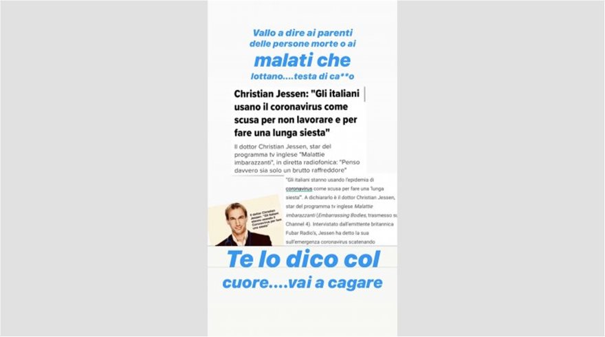 «Πήγαινε πες το αυτό στους συγγενείς των ανθρώπων που πέθαναν ή που παλεύουν στα νοσοκομεία, ηλίθιε. Στο λέω με όλη μου την καρδιά, αντε γ……..».