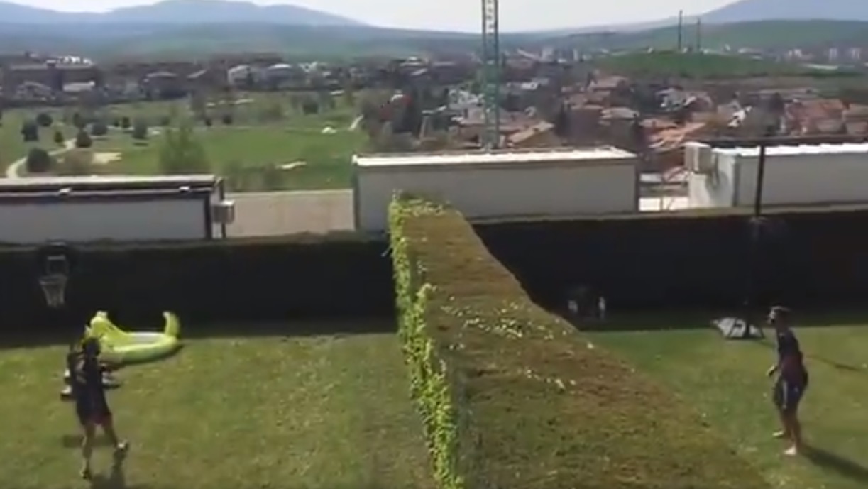 Οι δύο παίκτες της Οσασούνα εκμεταλλεύτηκαν το γεγονός πως είναι γείτονες και χωρίζει τα σπίτια τους ένας φράχτης. Χρησιμοποίησαν αυτόν τον φράχτη για φιλέ και το έριξαν στο… ποδοτένις, περνώντας ευχάριστα την ώρα τους.