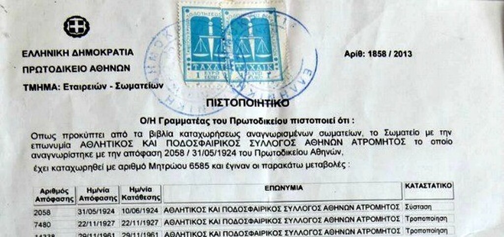 Η 31η του Μαΐου αποτελεί ημερομηνία-ορόσημο για την ιστορία του Ατρομήτου αφού σαν σήμερα πριν από 97 χρόνια, στις 31 Μαΐου 1924 αναγνωρίστηκε επίσημα από το Πρωτοδικείο Αθηνών με την επωνυμία «Αθλητικός και Ποδοσφαιρικός Σύλλογος Αθηνών, Ατρόμητος».