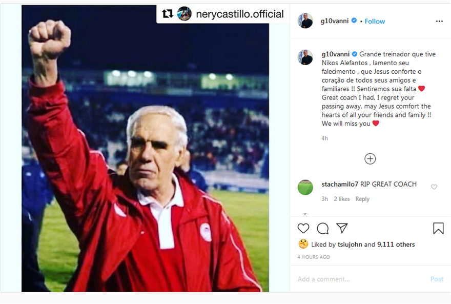 Ξεχωριστό ήταν το μήνυμα του Τζιοβάνι στο Instagram που έγραψε: «Μεγάλε κόουτς λυπάμαι πολύ που “έφυγες”. Μακάρι ο Ιησούς να ηρεμήσει τις καρδιές των φίλων και της οικογένειάς σου. Θα μας λείψεις».