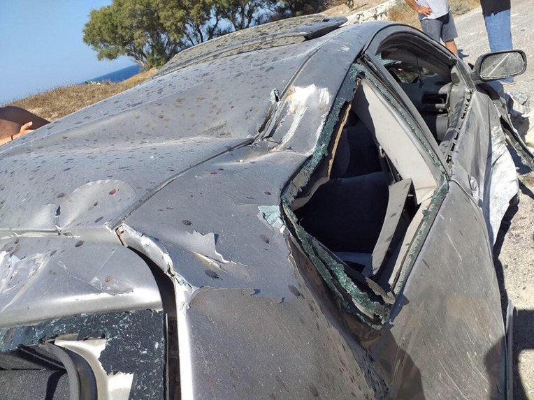 Το αμάξι στο οποίο επέβαινε έχει υποστεί υλικές ζημίες που προκαλούν σοκ, όπως φαίνεται από τις φωτογραφίες που δημοσίευσε η ιστοσελίδα santonews.gr.