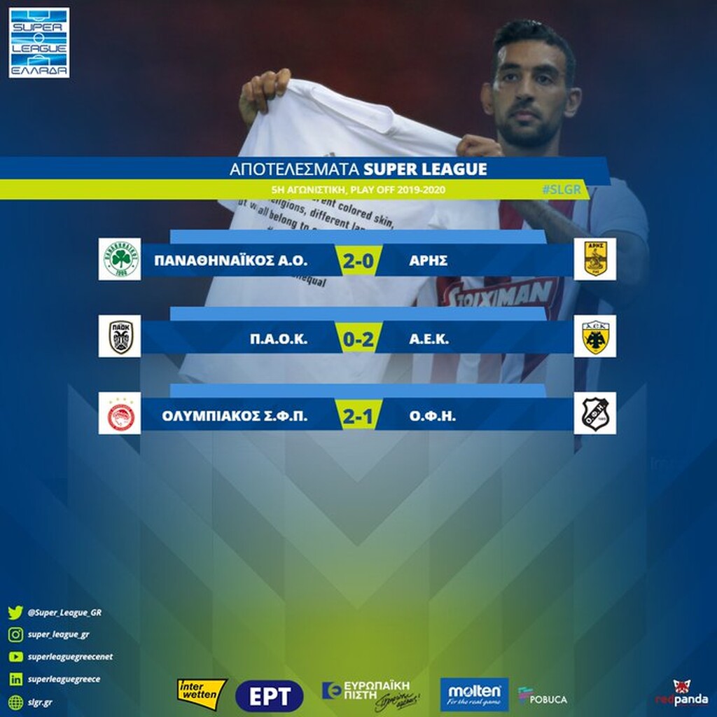 Τέλος, στο πρώτο χρονικά ματς της ημέρας, ο Παναθηναϊκός επικράτησε 2-0 του Άρη χάρη στα γκολ των Δημήτρη Κουρμπέλη και Δημήτρη Κολοβέτσιου, καταφέρνοντας έτσι να πάρει την πρώτη του νίκη στα play off. Οι «πράσινοι» περιμένουν τώρα στο ΟΑΚΑ τον Ολυμπιακό, που συνεχίζει αήττητος και θέλει να επαναλάβει το επίτευγμα του «τριφυλλιού» το 1964 και του ΠΑΟΚ την περσινή σεζόν.