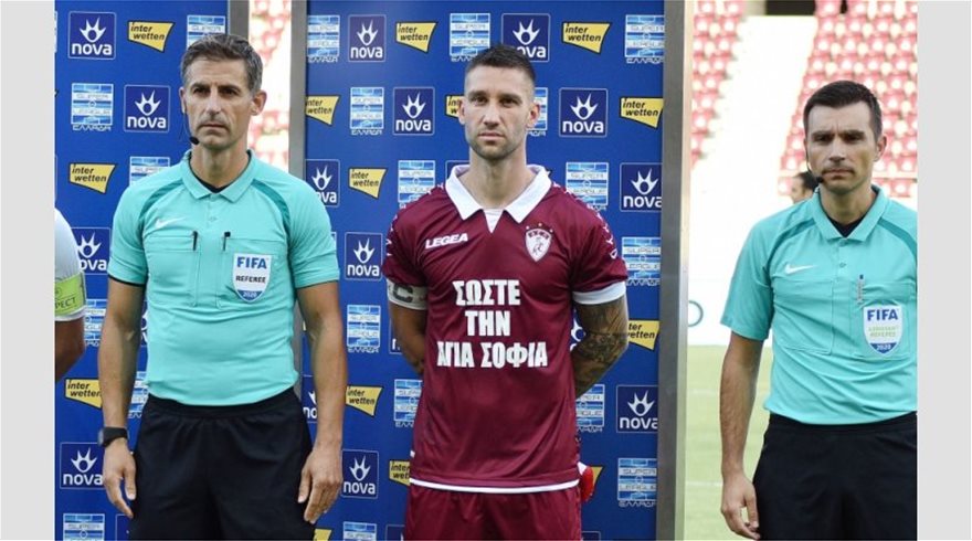 Η ομάδα της Λάρισας πήρε θέση στην απόφαση – ντροπή της τουρκικής κυβέρνησης να μετατρέψει την Αγία Σοφία σε τζαμί και εμφανίστηκε στο ματς με την Ξάνθη με φανέλα που έγραφε πάνω «ΣΩΣΤΕ ΤΗΝ ΑΓΙΑ ΣΟΦΙΑ».