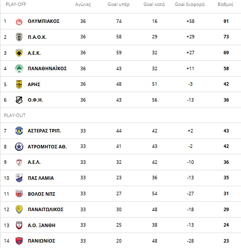 Η τελική βαθμολογία της Superleague