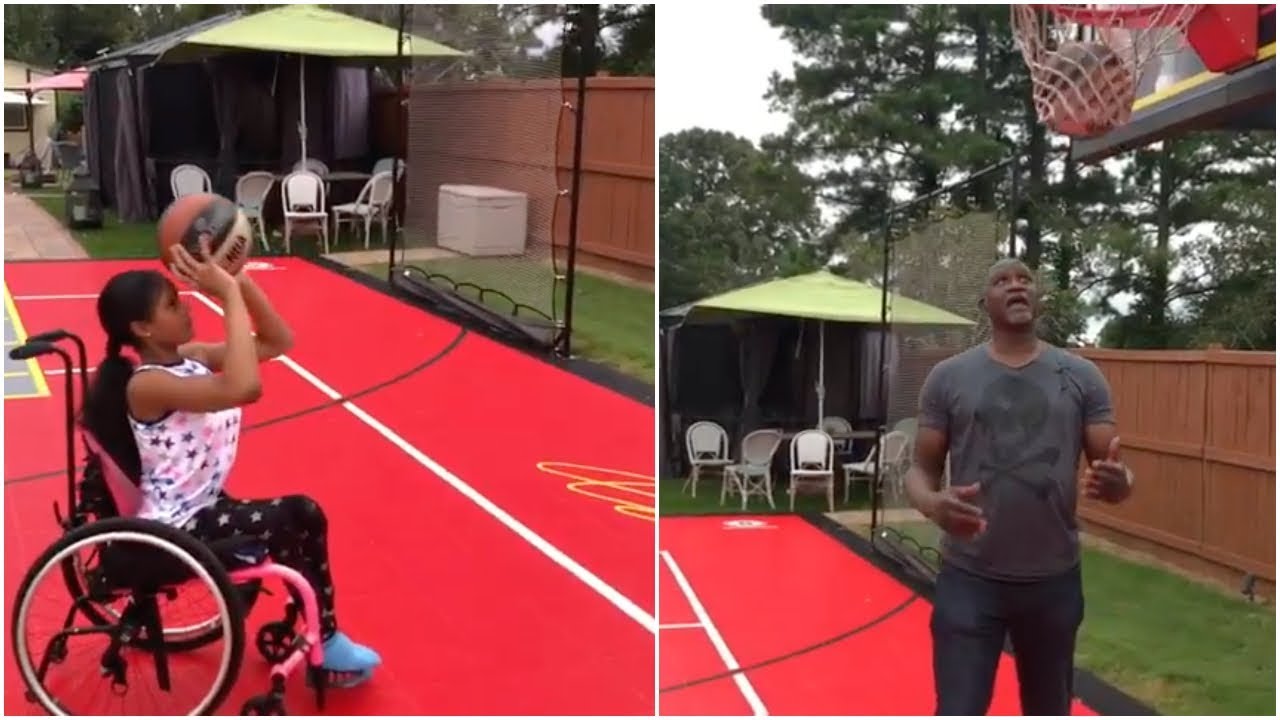Ο παλαίμαχος μπασκετμπολίστας, που πέρασε και από τα μέρη μας με τη φανέλα του Παναθηναϊκού (1995-96), βοηθάει την κόρη του να πετύχει καλάθι.