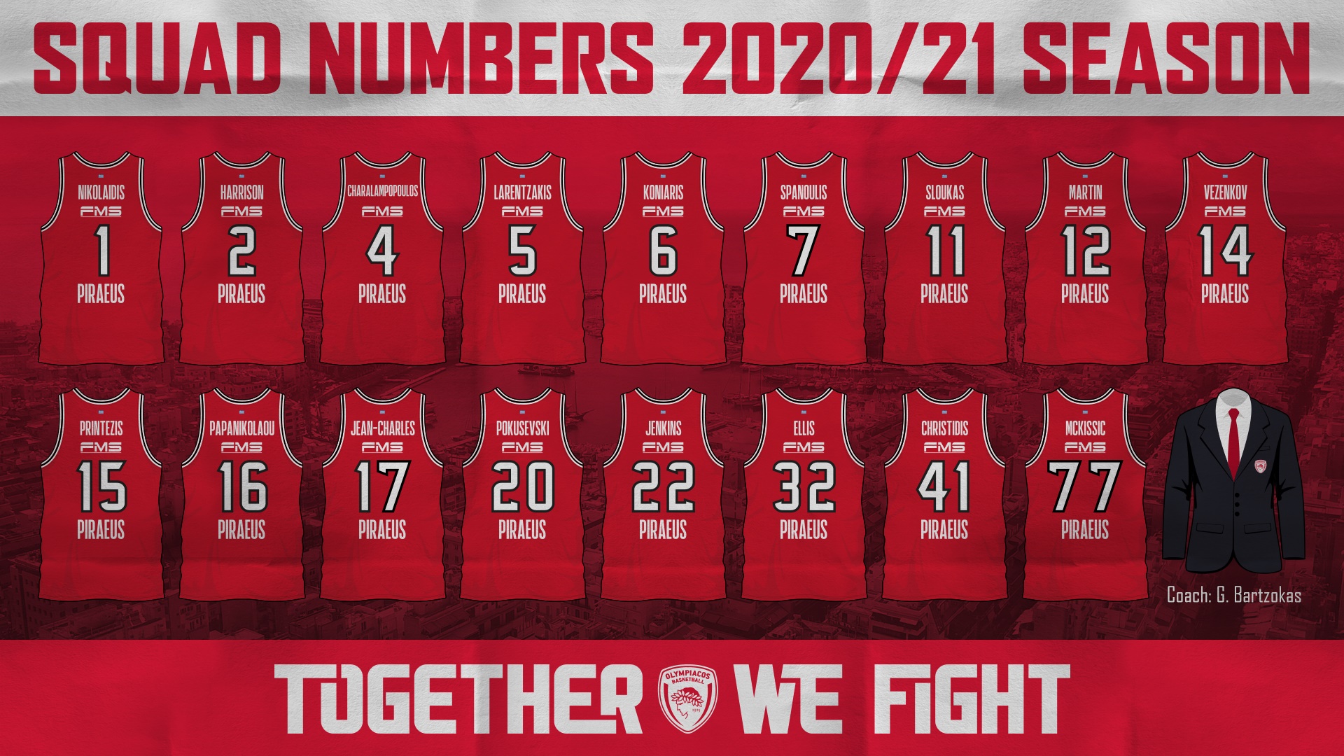 Οι σημαίες του Ολυμπιακού, δηλαδή οι Βασίλης Σπανούλης, Γιώργος Πρίντεζης και Κώστας Παπανικολάου διατήρησαν τους αριθμούς τους, όπως και οι περισσότεροι από τους νεοφερμένους στο λιμάνι σε σχέση με τις τελευταίες ομάδες τους.