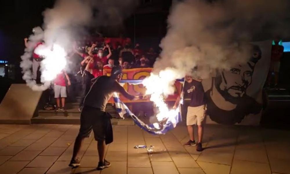 Έπεσε βαριά στους οπαδούς της ομάδας του Κοσσυφοπεδίου, Γκιλάν η ήττα τους από το ΑΠΟΕΛ, αφού μετά το τέλος του αγώνα έκαψαν μία ελληνική σημαία.