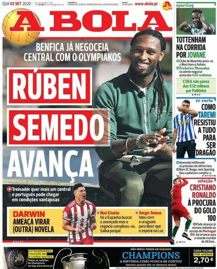 Βασικό θέμα στην πορτογαλική εφημερίδα «A Bola», είναι ο Ρούμπεν Σεμέδο. Ο έμπειρος κεντρικός αμυντικός έχει προσελκύσει το ενδιαφέρον των Πόρτο και Μπενφίκα και δεν αποκλείεται να αποχωρήσει από τον Ολυμπιακό.