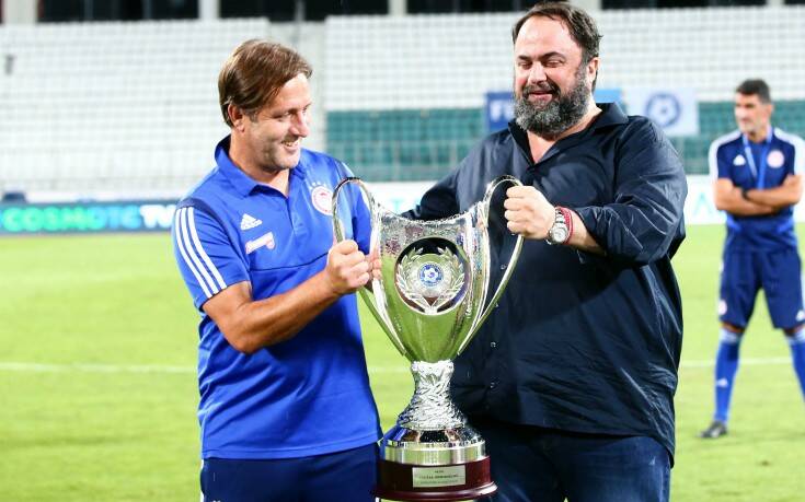 Οι Πειραιώτες νίκησαν την ΑΕΚ με 1-0 χάρη στο γκολ του Ρατζέλοβιτς και όταν ήρθε η ώρα της απονομής άπαντες, από τον Βαγγέλη Μαρινάκη και τον Πέδρο Μαρτίνς μέχρι τους παίκτες, πανηγύρισαν με την ψυχή τους.