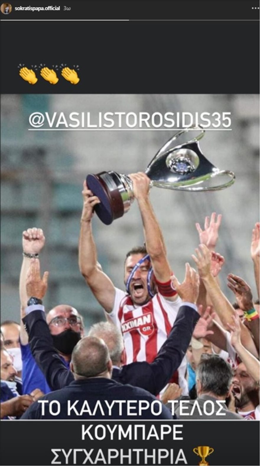 Ο Σωκράτης Παπασταθόπουλος έκανε μια ανάρτηση για την ολοκλήρωση της καριέρας του Βασίλη Τοροσίδη με την κατάκτηση του νταμπλ.