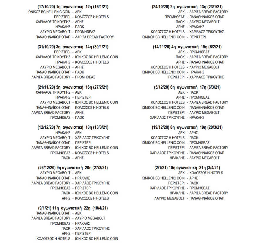 Έπειτα από σύσκεψη που πραγματοποιήθηκε ο ΕΣΑΚΕ γνωστοποίησε το νέο πρόγραμμα της σεζόν 2020-21. Σε αυτό μετέχουν 12 ομάδες, κάτι που σημαίνει πως δεν θα έχει καμία ομάδα ρεπό την ερχόμενη σεζόν.