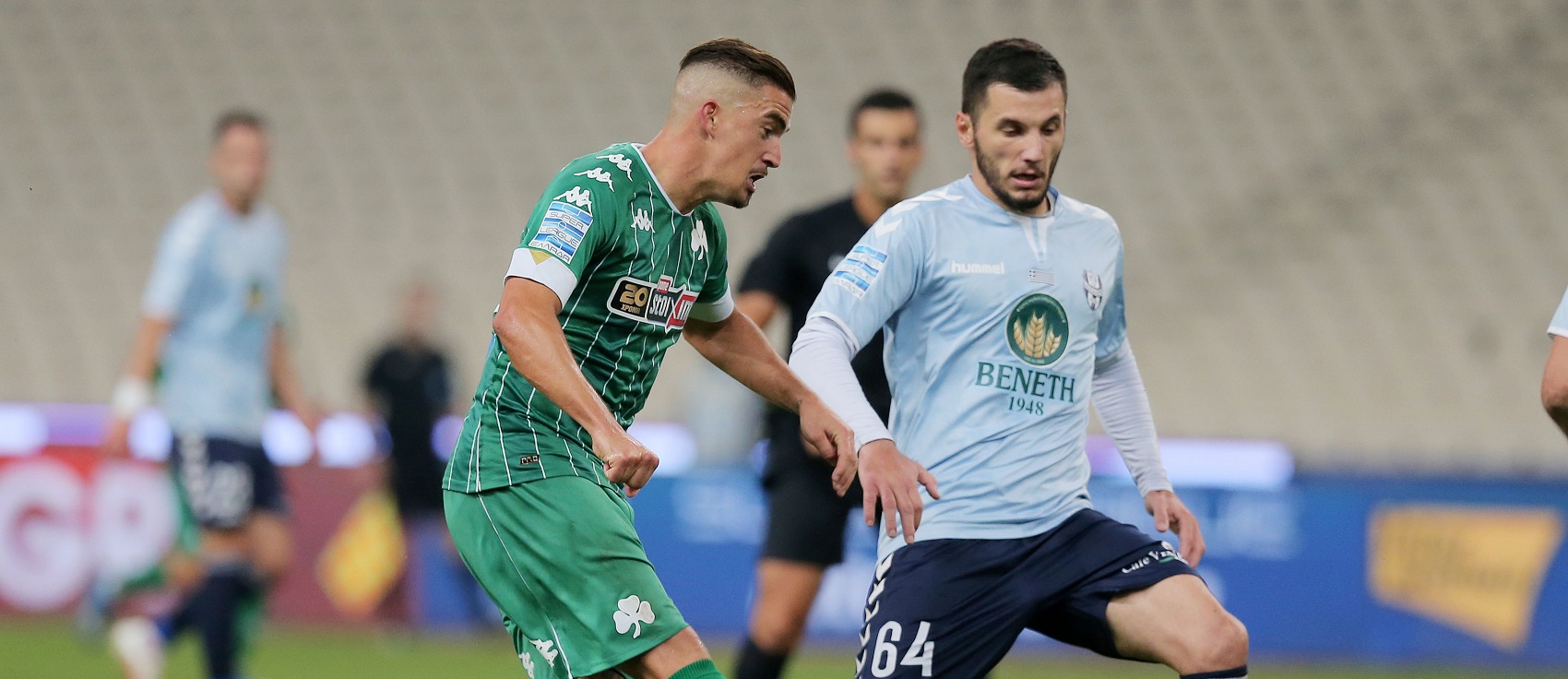 Οι «πράσινοι» (χωρίς τους τιμωρημένους Κουρμπέλη, Σάντσες και με τον Γιοάν Μολό δεξιό μπακ ως επιλογή… ανάγκης) δεν ξεκίνησαν καλά τον αγώνα, δεν έβγαλαν ένταση στο παιχνίδι τους και για μεγάλο διάστημα έδειχναν «εγκλωβισμένοι» στην εξαιρετική αμυντική τακτική του Απόλλωνα, ο οποίος έπαιζε συνεχώς με ντουμπλαρίσματα πάνω στους Καρλίτος, Μακέντα, που δεν είχαν ούτε… μέτρο για να κινηθούν ελεύθερα και να απειλήσουν.