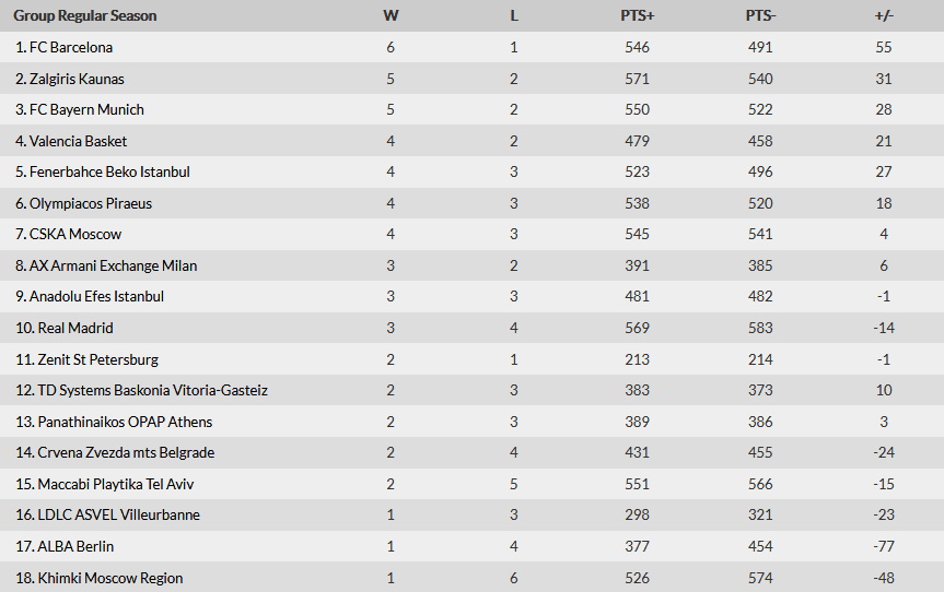 Euroleague: Η βαθμολογία και τα αποτελέσματα της αγωνιστικής