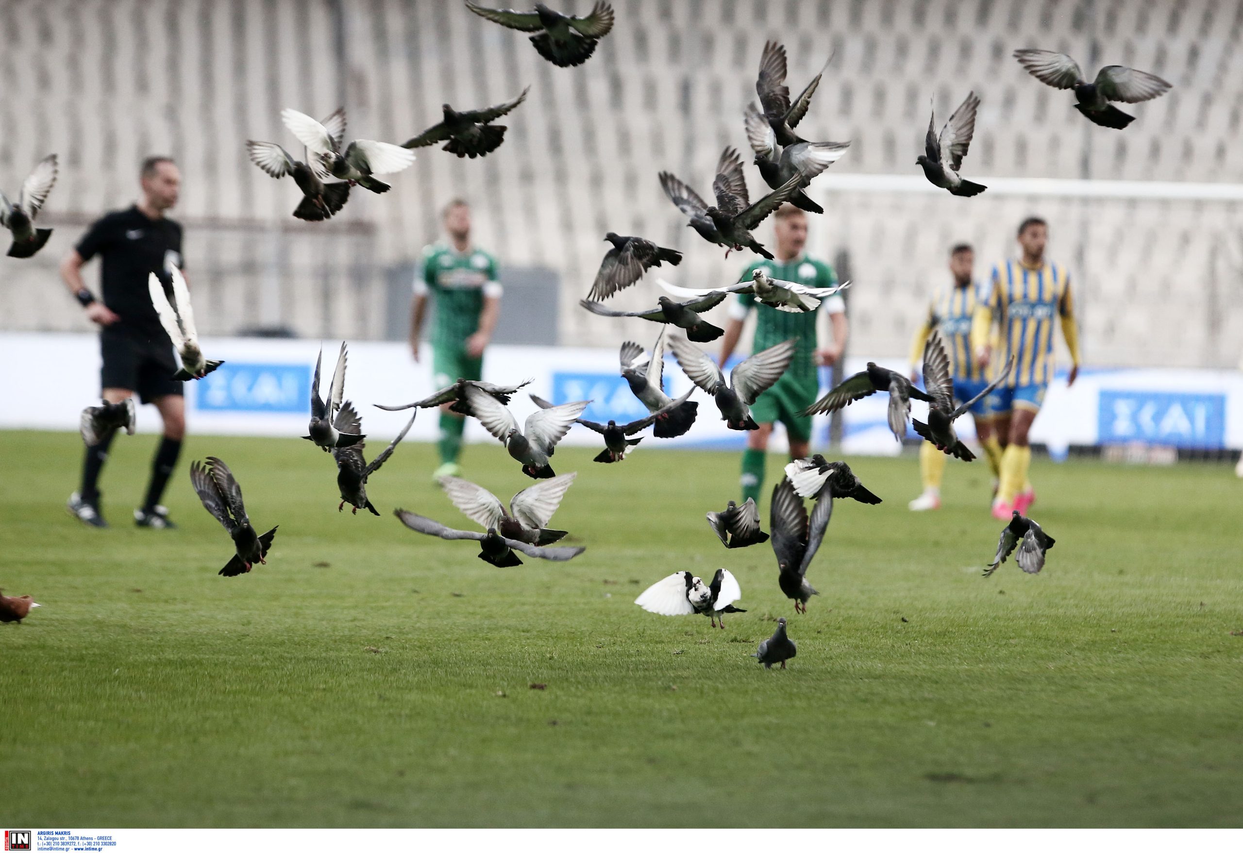 Παναθηναϊκός-Παναιτωλικός: Περιστέρια έκαναν… κατάληψη στον αγωνιστικό χώρο του ΟΑΚΑ (φώτο)