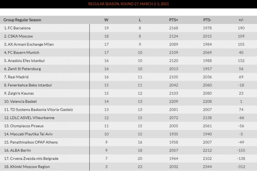 Απαράλλακτη παρέμεινε η κατάσταση στην κορυφή της βαθμολογίας της Euroleague, καθώς Μπαρτσελόνα και ΤΣΣΚΑ Μόσχας συνέχισαν με νίκες τις υποχρεώσεις τους.