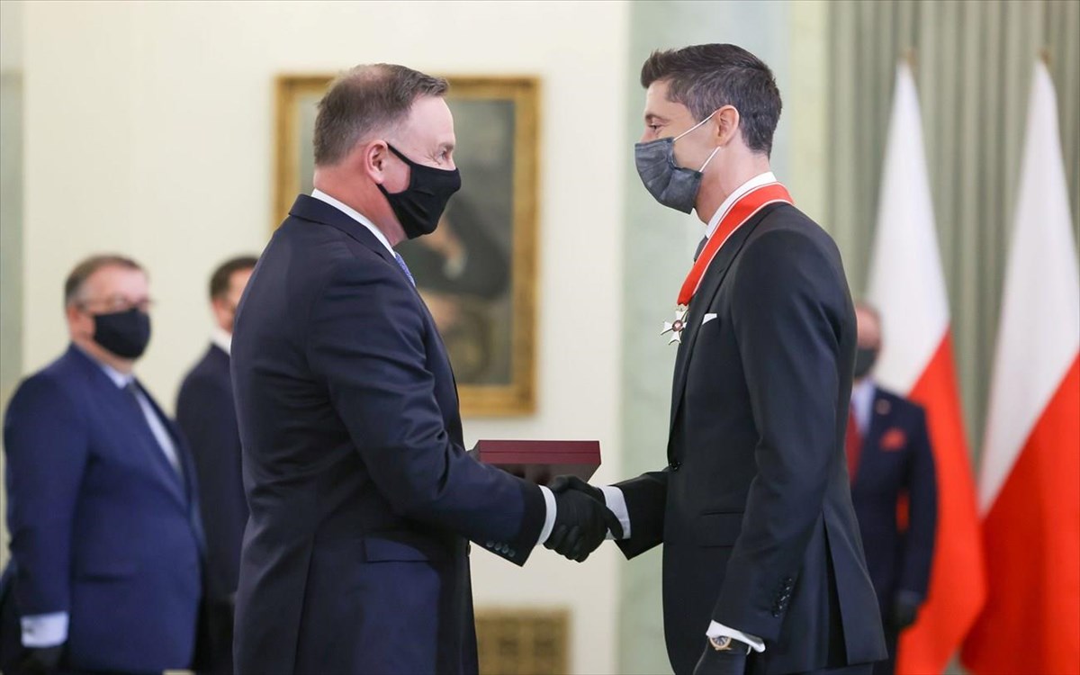 Ο κορυφαίος στράικερ Ρ.Λεβαντόφσκι τιμήθηκε από τον πρόεδρο της Πολωνίας σήμερα, Δευτέρα (22/3) με το βραβείο «Commander’s Cross of the Order of Polonia Restituta» για τις επιτυχίες του και την προσφορά του στη χώρα. «Δεν έχει σημασία πόσα τρόπαια έχω ήδη κατακτήσει… αυτή τη στιγμή οι φιλοδοξίες μου είναι υψηλές και δεν θέλω να στηριχτώ στις υπάρχουσες,» δήλωσε ο 32χρονος ποδοσφαιριστής.