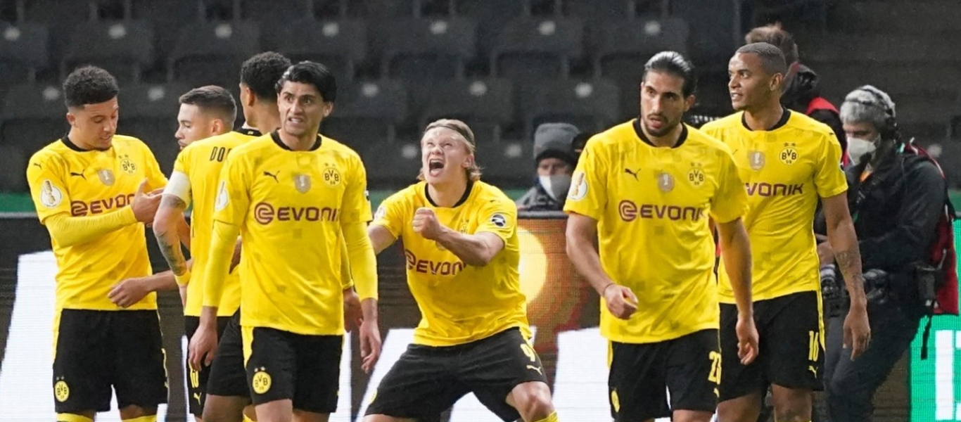 Το απίστευτο πρώτο ημίχρονο των Βεστφαλών σφραγίστηκε και με τρίτο γκολ στο 45ο λεπτό, όταν ο Ρόις έφυγε με ταχύτητα στην κόντρα για να στρώσει στον επερχόμενο Σάντσο που άδειασε τον Γκουλάσι και με το δεύτερο προσωπικό του τέρμα έγραψε το 3-0, σφραγίζοντας επί της ουσίας από νωρίς τη νίκη και την κατάκτηση του τροπαίου για την ομάδα του.