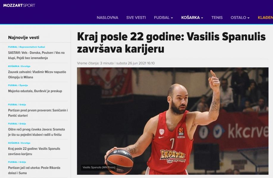 Mozzart Sport: «Τέλος μετά από 22 χρόνια: Ο Σπανούλης ολοκληρώνει την καριέρα του»
