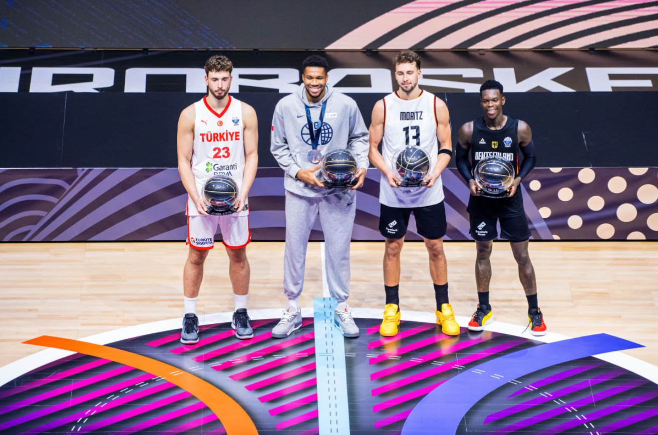 Η αντίθεση στη φωτογραφία των κορυφαίων του τουρνουά είναι τεράστια, καθώς οι Αντετοκούνμπο, Βάγκνερ και Σρέντερ είναι χαμογελαστοί και ο Σενγκούν ανέκφραστος.