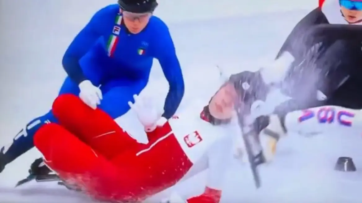 Το ατύχημα σημειώθηκε περίπου δύο λεπτά μετά την εκκίνηση του τελευταίου προημιτελικού στα 1.500 μέτρα short track. Η σύγκρουση ήταν σφοδρή και τα αργά πλάνα αποκαλύπτουν πόσο οριακή ήταν η στιγμή — λίγα χιλιοστά πιο μέσα και ο τραυματισμός θα μπορούσε να οδηγήσει σε μερική τύφλωση.
