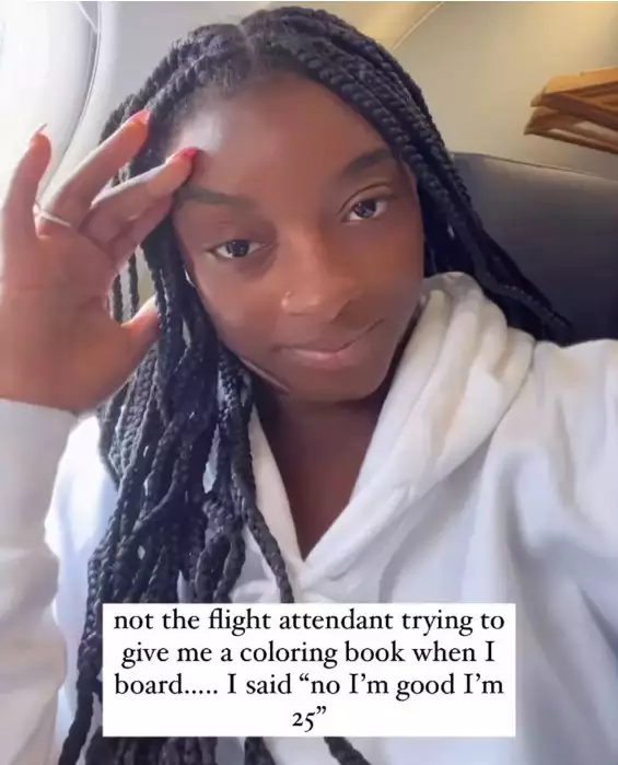 Η μικροκαμωμένη γυμνάστρια πόσταρε στο Instagram μια σέλφι (σ.σ. με την ίδια να μην έχει και την πιο… χαρούμενη όψη) σχολιάζοντας την αεροσυνοδό που προσπαθούσε να της “… δώσει μπλοκ ζωγραφικής κατά την επιβίβαση” Όπως χαρακτηριστικά έγραψε: “Της είπα ‘όχι, είμαι εντάξει, είμαι 25”.