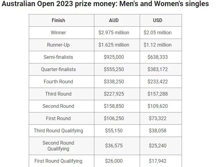 Ο Έλληνας πρωταθλητής θα φύγει από την Αυστραλία με ένα μεγάλο χρηματικό έπαθλο στις «ασποκευές» του. Συγκεκριμένα για την πορεία του μέχρι τον τελικό θα λάβει 1.009.502 ευρώ (1,12 εκατ. δολάρια).