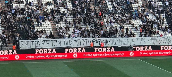 Συγκεκριμένα, μπροστά από την θύρα 5-6 ανέβηκε πανό με μήνυμα: «Σκοτώσατε τον κόσμο στη Ραφήνα – Πουλήσατε την Μακεδονία για το χρήμα» ενώ μπροστά από την θύρα 4 υπάρχει συλλυπητήριο μήνυμα στις ποικογένειες των θυμάτων «Συλλυπητήρια στις οικογένειες των θυμάτων – 23/7/2018».