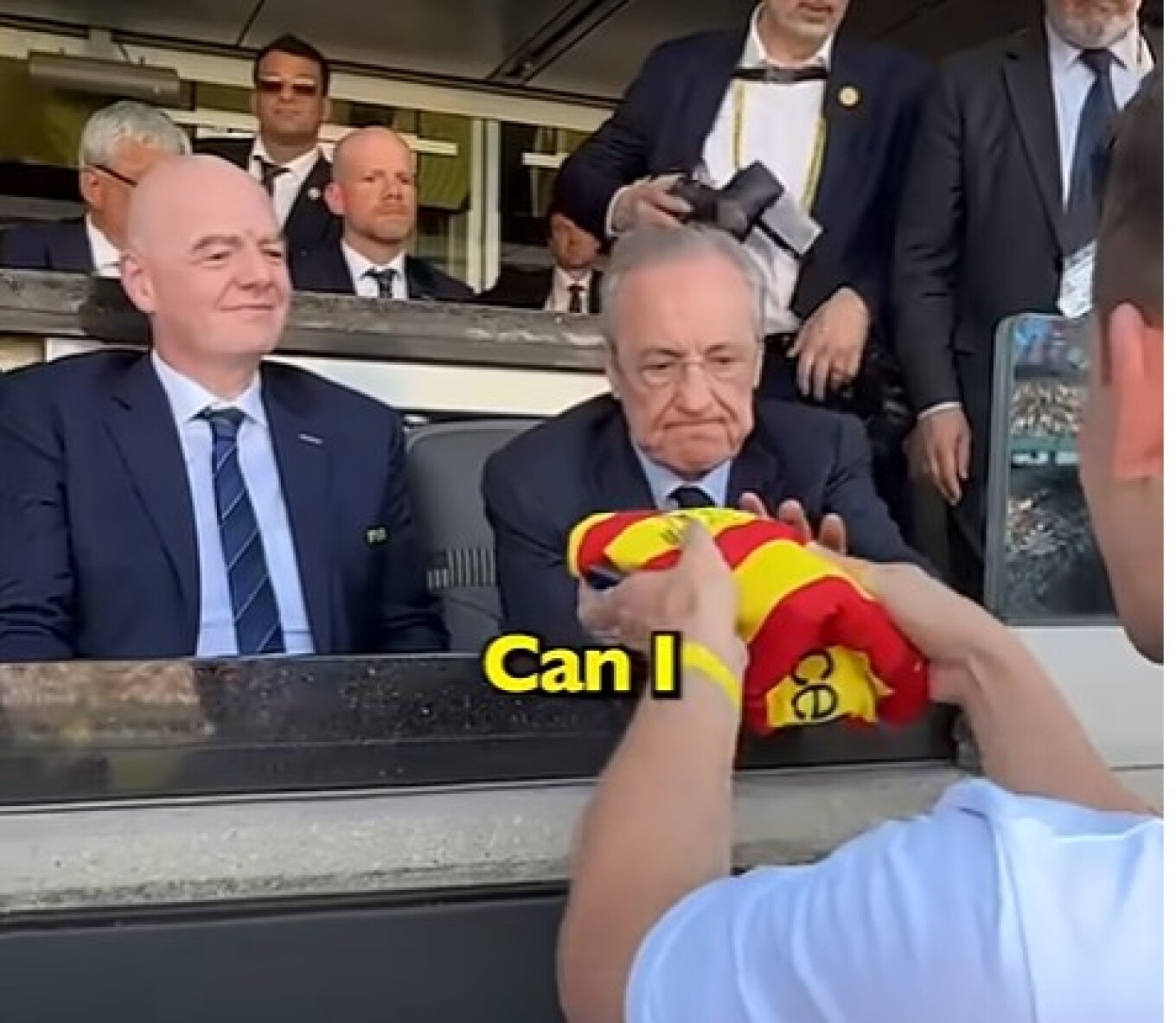Ο Ισπανός παράγοντας δεν αντιλήφθηκε στην αρχή τι φανέλα ήταν αυτή που του έδωσε ο νεαρός και ετοιμάστηκε να βάλει την υπογραφή του (γεγονός που αυτομάτως θα την έκανε συλλεκτική), αλλά ένας άνδρας από την ασφάλεια στα VIP τον σταμάτησε κυριολεκτικά την τελευταία στιγμή.