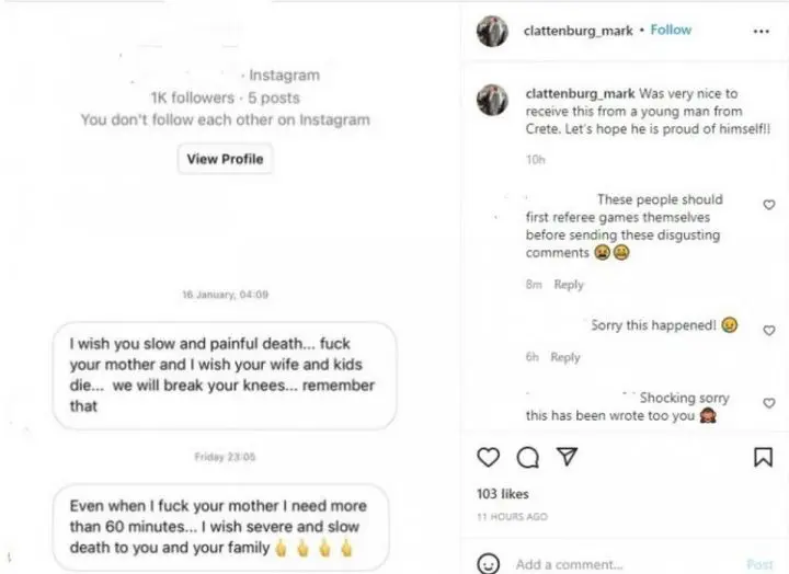 Ακόμη, χρειάζομαι περισσότερη από μία ώρα όταν γ@@@ τη μάνα σου. Εύχομαι σοβαρό και αργό θάνατο σε σένα και στην οικογένειά σου”, ανέφερε το εμετικό μήνυμα κατά του Άγγλου.