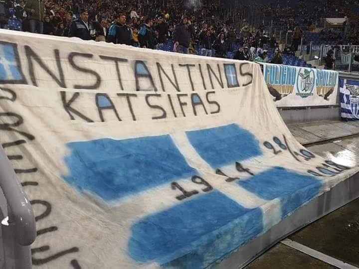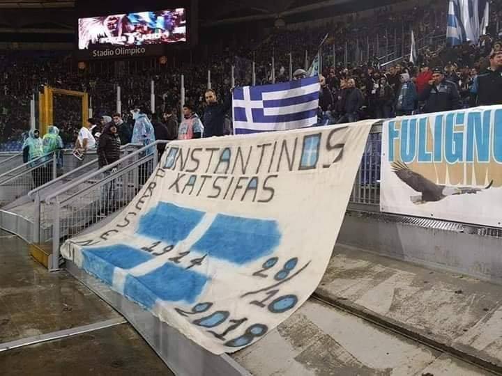 Οι φίλοι των «λατσιάλι», γνωστοί για τα φιλοελληνικά αισθήματα τους, ανάρτησαν πανό στην μνήμη του Βορειοηπειρώτη, Κώστα Κατσίφα, ο οποίος έπεσε πριν από περίπου 30 ημέρες στα σύνορα από Αλβανικά πυρά.