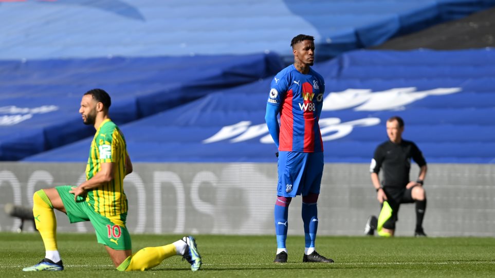 Ο πρώτος ποδοσφαιριστής στην Premier League που σταματάει να γονατίζει κατά την έναρξη του αγώνα είναι ο Βιλφρίντ Ζαχά. Ο εξτρέμ της Κρίσταλ Πάλας δεν ακολουθεί το… ρεύμα και την οδηγία της διοργανώτριας αρχής, η οποία έχει πάρει την απόφαση αυτή θέλοντας να στείλει το δικό της μήνυμα κατά του ρατσισμού μετά την δολοφονική επίθεση αστυνομικών στον Τζορτζ Φλόιντ στις ΗΠΑ προ μηνών.